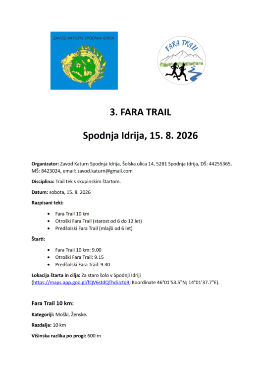 3. Fara Trail - sobota, 15. 8. 2026